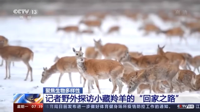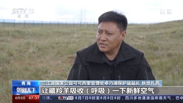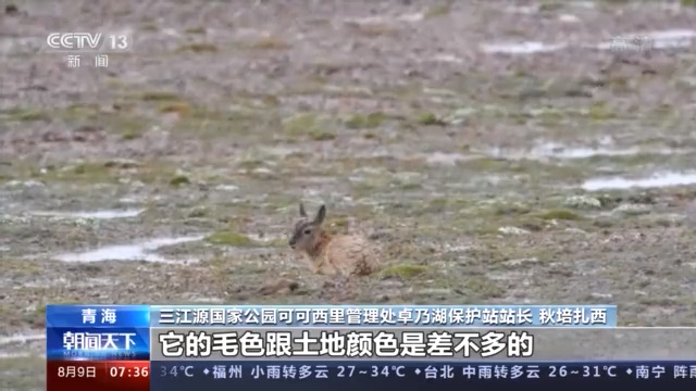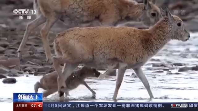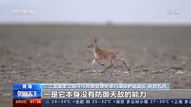 记者 邵海成:我现在所在的地方是三江源国家公园可可西西五道梁保护站,这里的海拔有4600多米,在我身后不远处母藏羚羊正带领出生不久的小藏羚羊,返回栖息地曲麻河地区。