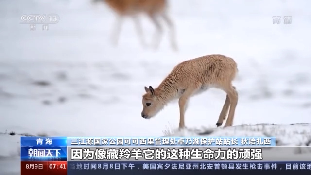 三江源国家公园可可西里管理处卓乃湖保护站站长 秋培扎西:像藏羚羊它生命力的顽强,作为一个旗舰物种,作为一个基础物种,支撑起青藏高原的生态平衡,也是值得我们去守护、去保护的。