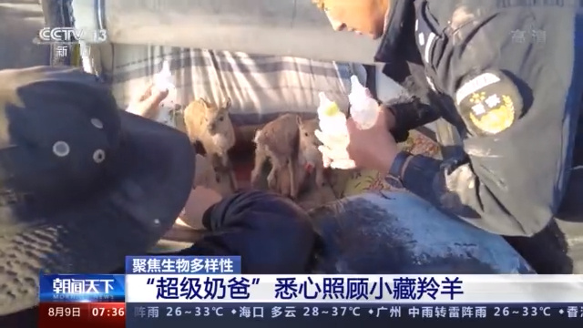 三江源国家公园可可西里管理处索南达杰保护站副站长 龙周才加:每天喂牛奶,早上喂一次、中午喂一次、晚上喂一次,喂完每天就看它的消化,拉出的粪便有没有特别稀。