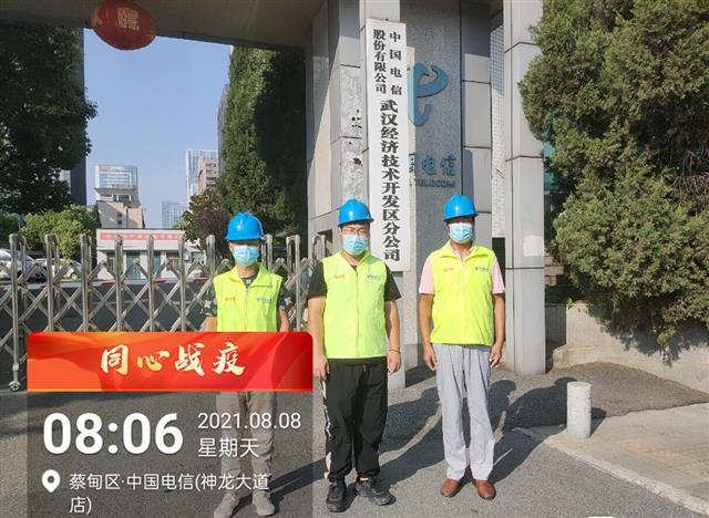 湖北日报讯(记者汤炜玮、通讯员唐慧玲)8月9日,在武汉市经开区封控区,湖北电信工程有限公司项目经理张玉明带领抢修人员解决完中铁十一局项目部网络故障后,回到该公司驻经开区办公室。