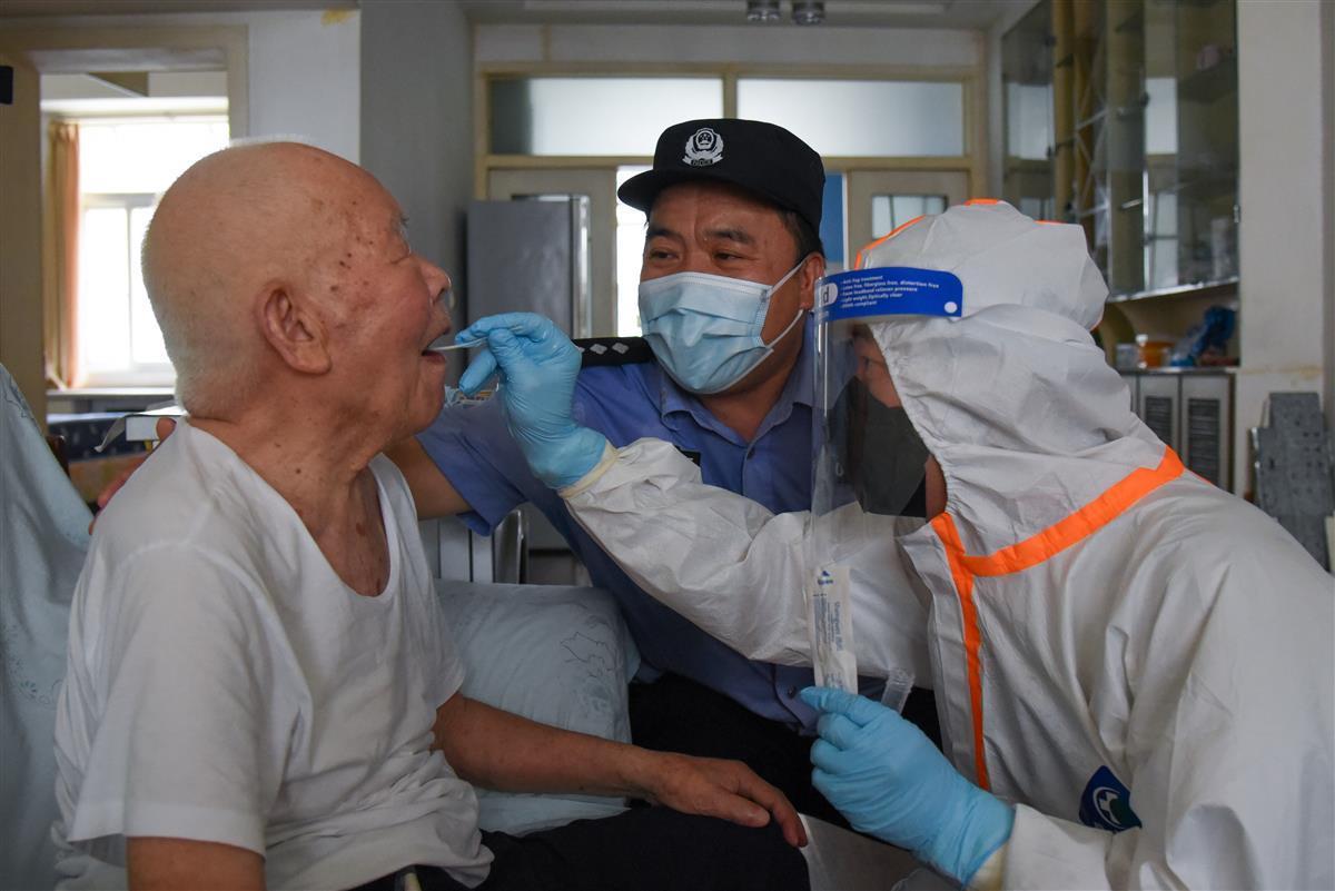 今年93岁高龄的段国柱老人就是联名独居老人之一,因身患多种疾病,生活无法自理。8月2日,该社区开展全员核酸检测以来,为了让核酸采样在社区内“无死角、全覆盖”,肖利军和医护人员协商,上门入户为段国柱老人采集核酸样本。