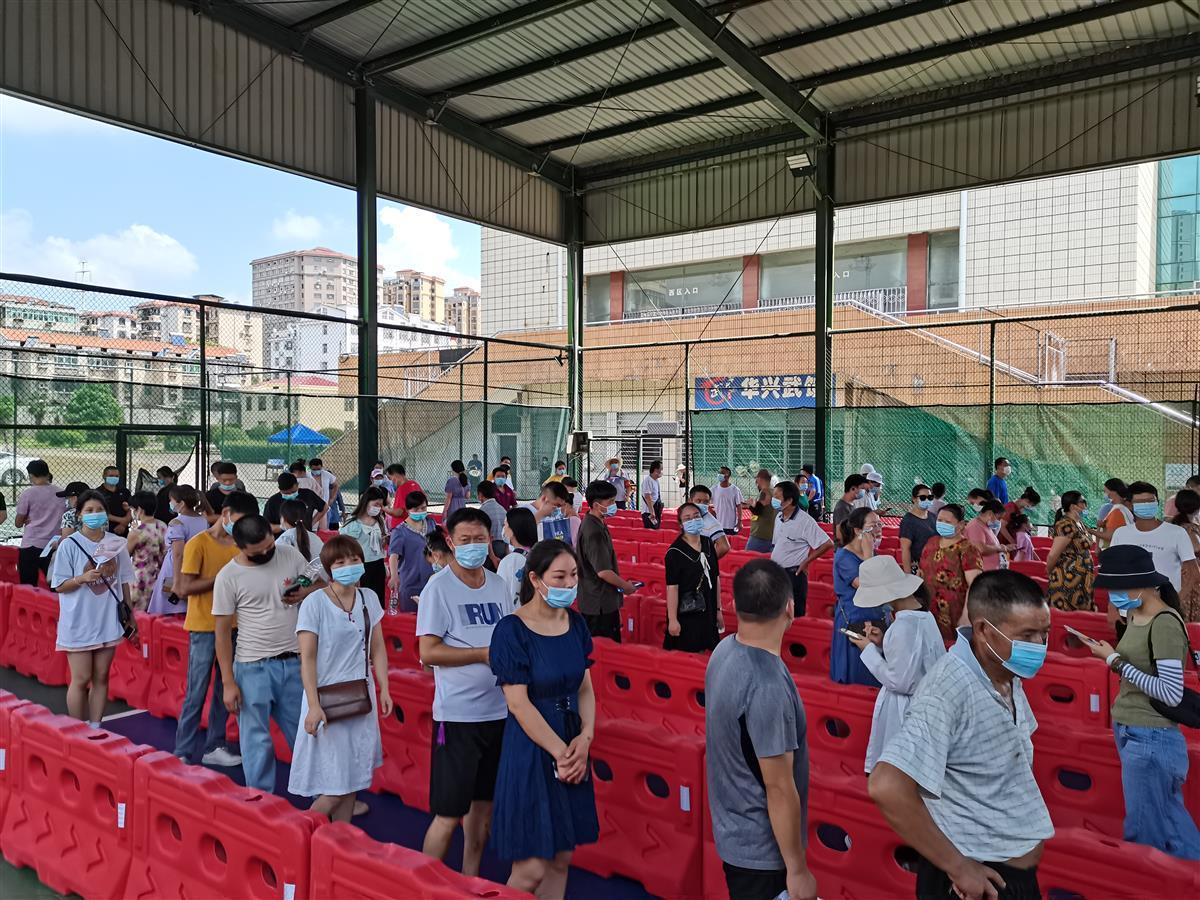 原来,为方便群众进行集中核酸检测采样,8月4号晚上,温泉街道办事处紧急调派20多名街道、社区干部,在金叶体育馆连夜奋战至凌晨近4点,将所有设施设备布置到位,8月5日,新建的临时核酸检测采样点正式投入使用。