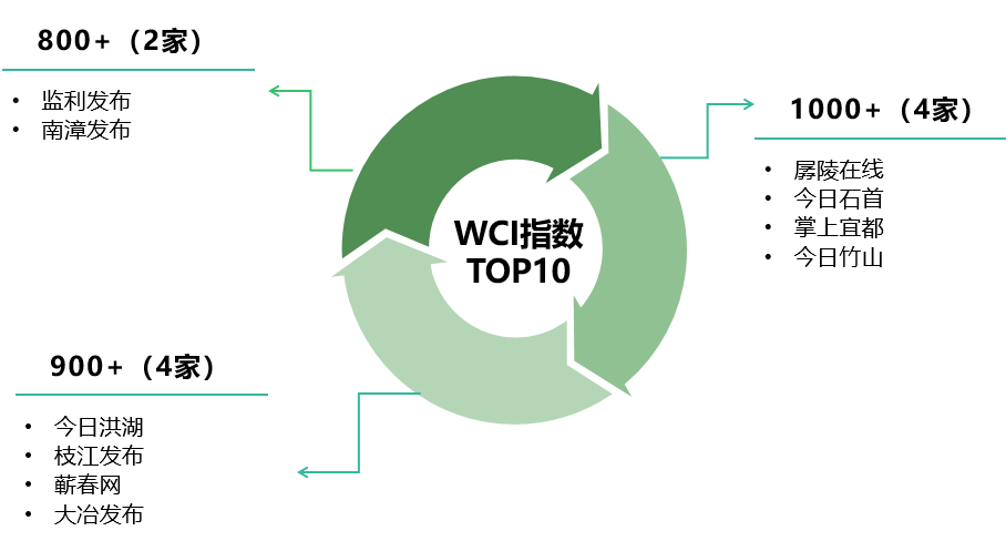从WCI指数来看,本期上榜单位WCI值整体较6月得分上升,1000以上的有4个,900-1000区间的也有4个。“今日石首”WCI增量下降,主要是因为阅读总数增量、平均阅读数增量均有减少,且其头条文章阅读增量为10799次,远不及“孱陵在线”的79063次,另外,其在看总数、最大阅读数均不及第一名,尽管在看总数增量超过“孱陵在线”,但遗憾未能保持冠军地位。“枝江发布”WCI增量最高,主要是因为平均阅读数、头条文章阅读增量均为最高,文章总增量排名第二,其在看总数增量、最大点赞数均表现不俗。