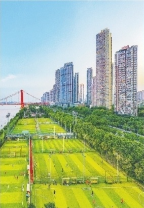 汉阳江边郁郁葱葱的行道树,为市民提供了清爽绿荫,成为城市靓丽的风景线。