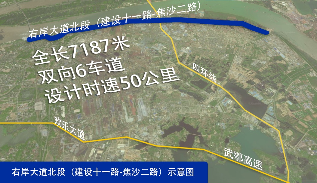 根据规划,右岸大道北段工程位于长江以南,西接青山主城区,东连化工区,服务北湖生态新城,是实现武鄂同城的重要连接通道。后续,右岸大道北段(焦沙二路-八吉府大街)工程、右岸大道(花山大道-市域边界)工程共计全长21公里也已列入2021年城建前期计划,目前正在开展规划研究工作。