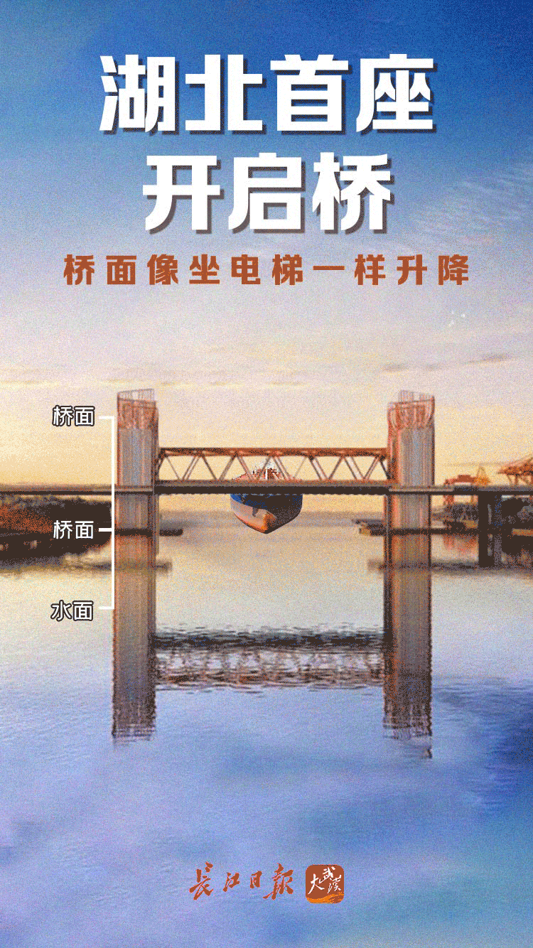 施工单位武汉城建集团武汉建工项目现场负责人介绍,这座桥是湖北省首座开启桥,桥梁主跨径95米,开启方式采用双提升机垂直提升,主梁采用钢箱梁,主梁用钢达2193.4吨,该桥开启孔跨径和提升重量等两项指标位居全国第一。