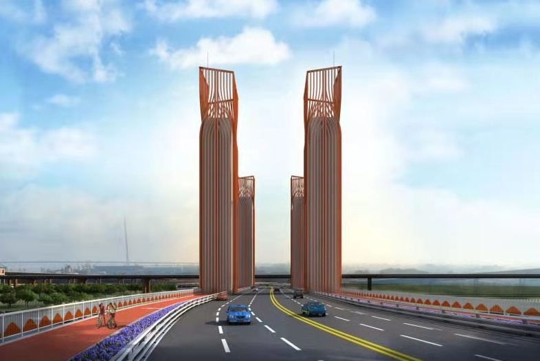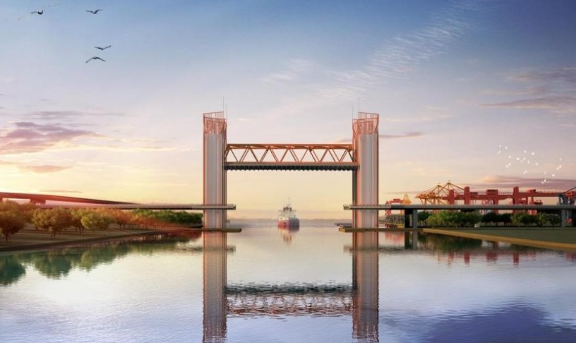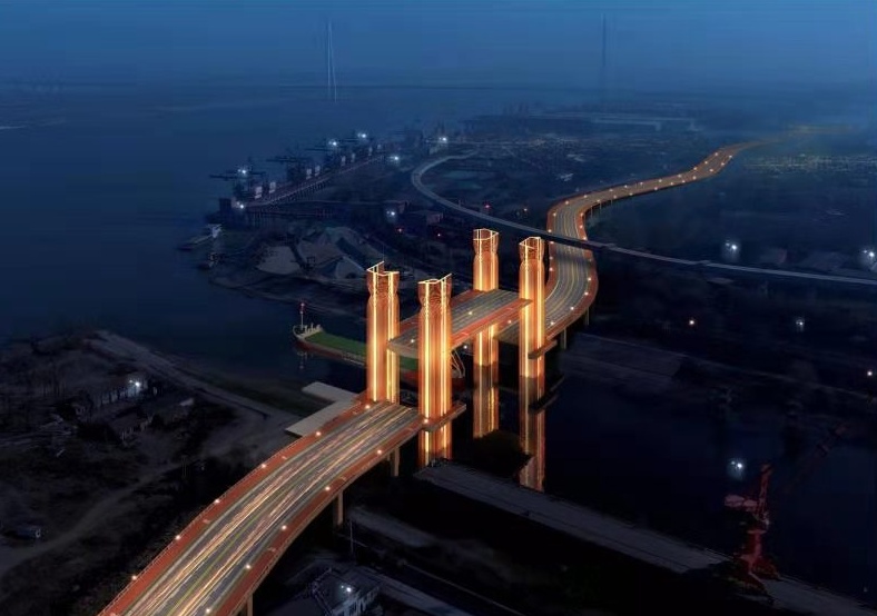 “该工程沿线需穿越中韩石化管道、青山船厂厂区、武钢物流皮带通廊等大型企业工业设施,协调工作量大,技术复杂。”该负责人说,项目亮点之一就是将建设一座桥,该项目上跨工业港运河,由于有通航需求,因此采用了垂直升降开启桥的桥型,这种桥型在国内较罕见,仅有天津海门大桥、温州瓯南大桥采用。塔和梁组成“门”字结构,寓意为工业港门户,能够达到临江观江、生态交通和谐统一的景观效果。