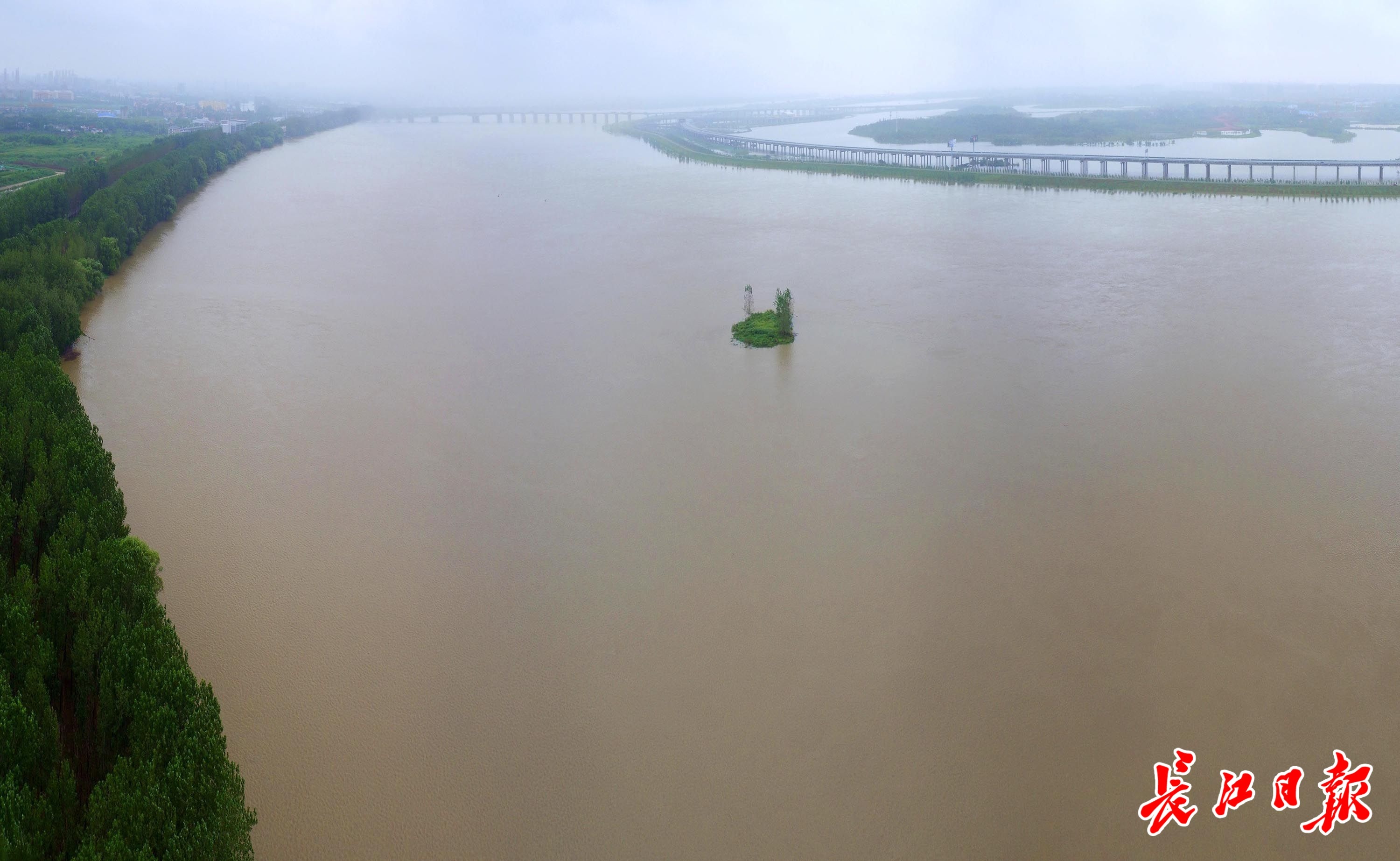 8月14日,府河水势汹汹,河道中间的一处小岛如一叶小舟浮在水面。