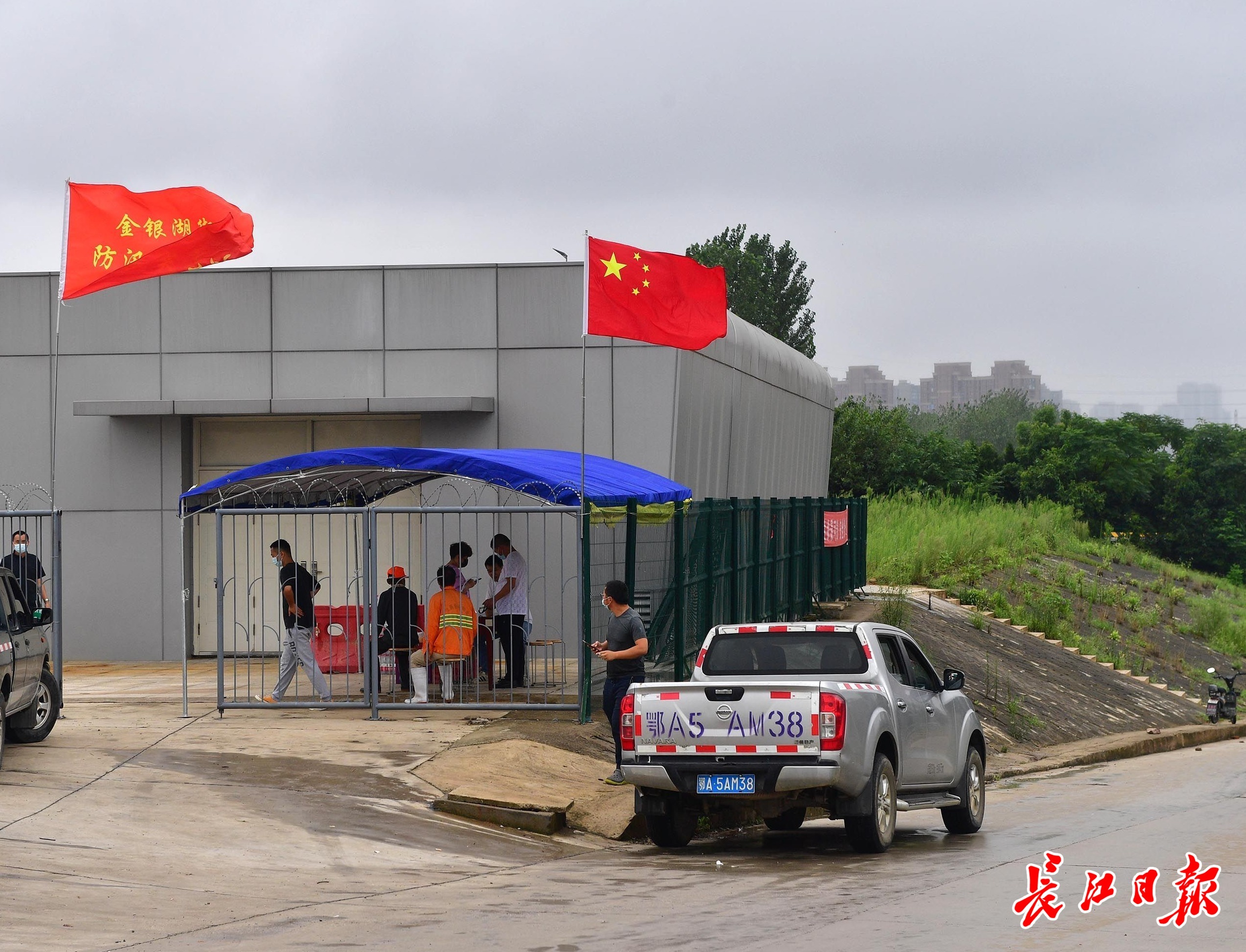 府河东西湖大堤上,一处防汛哨棚已搭好,人员就位。