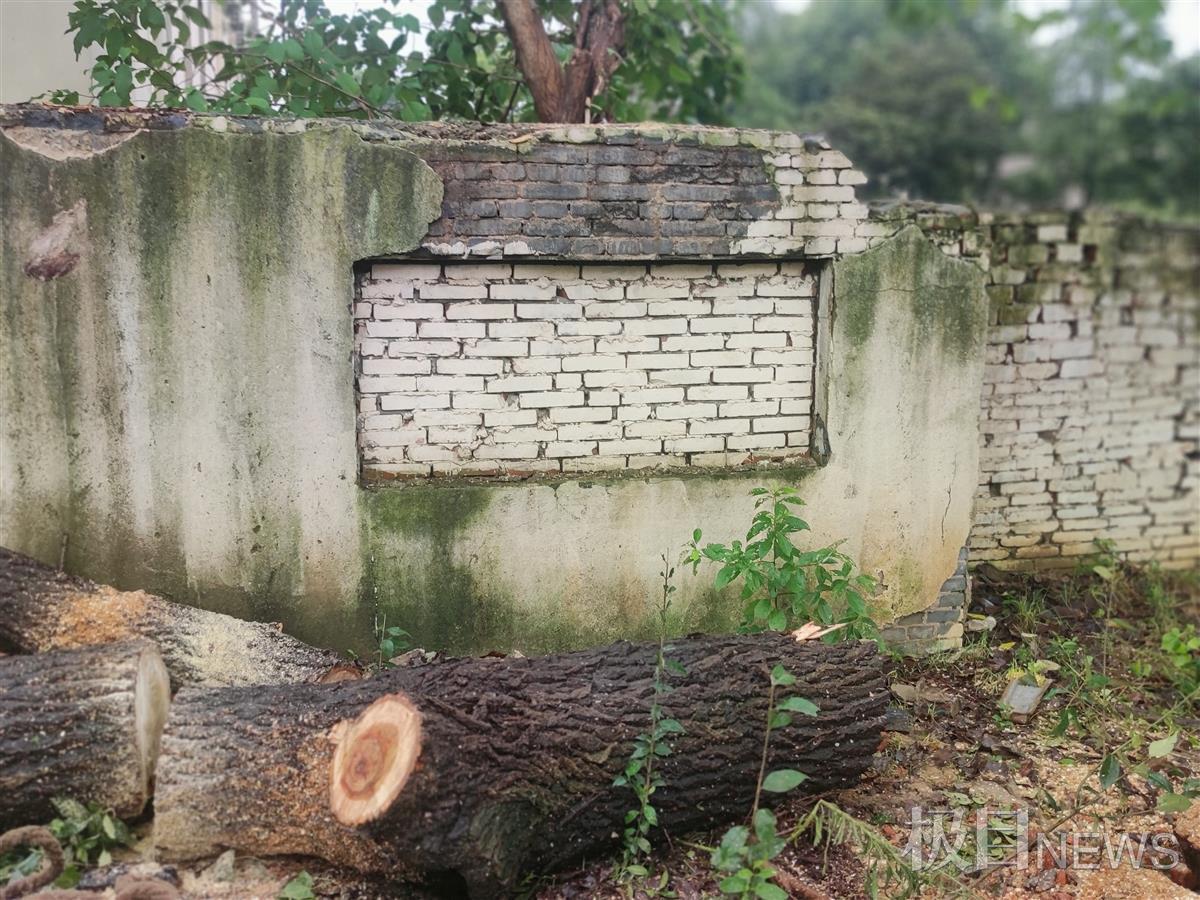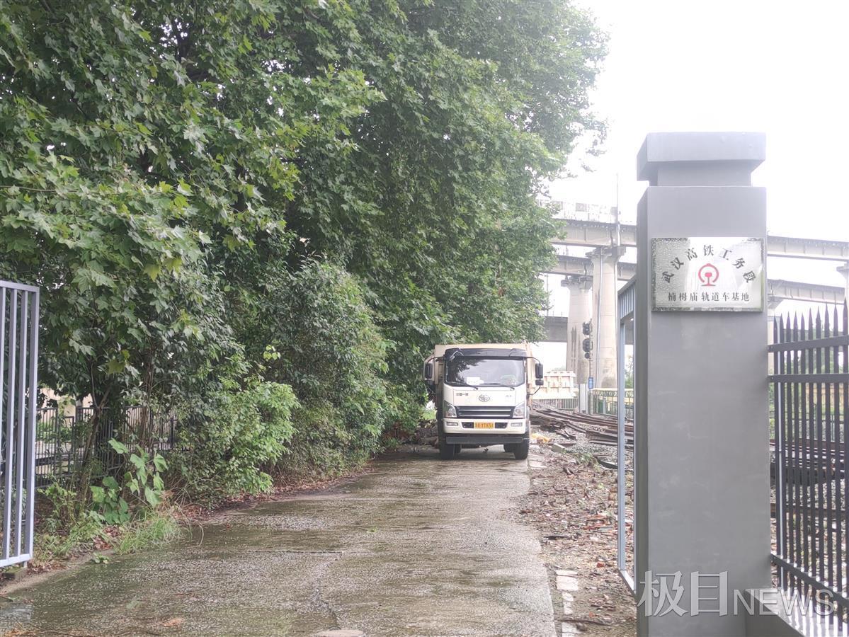 沿着围墙,记者来到“肇事”大树所在地。这是一个单独的院落,院门口牌子上写着武汉高铁工务段楠栂庙轨道车基地。院内左边是一片空地,上面杂草丛生,五六名工人正在用电锯切割倒在地上的树干。