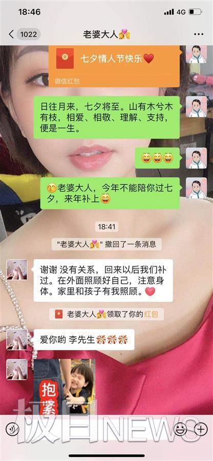 明天就是七夕了,考虑到出任务没时间和妻子联系,李炜赶紧给妻子发送了爱心红包,隔空送去七夕祝福。没过一会儿,他的手机微信视频通话来了,传出妻子温柔的话语:在外面照顾好自己,注意身体,家里和孩子有我照顾。前几天晚上,女儿睡着了在叫爸爸,是想爸爸了。此时,李炜声音哽咽,眼眶泛红。
