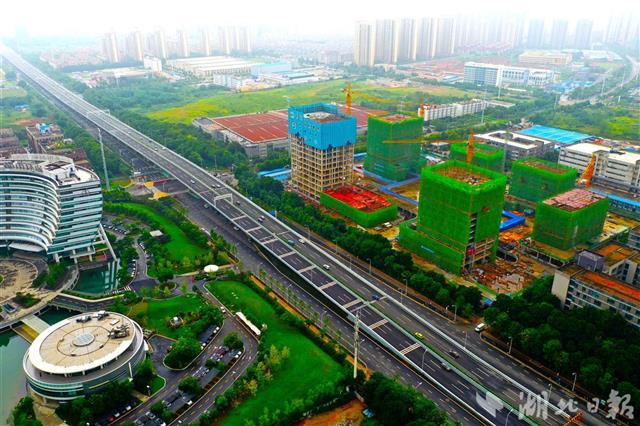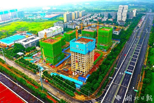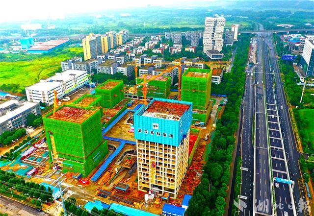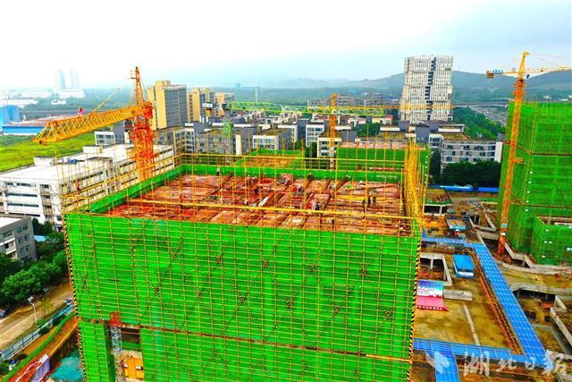 8月16日,武汉高科集团光谷数字家庭产业基地孵化器施工现场,360余名工人正加紧作业,确保下月如期封顶。位于光谷大道旁的该项目总建筑面积约15.8万平方米,是光谷首个数字经济综合园区,计划明年6月竣工投用,将重点培育和引进瞄准数字经济、人工智能、云计算和大数据产业领军企业,打造光谷新经济产业示范基地。(湖北日报全媒记者 田悦 通讯员 张代玮 郭强 摄)