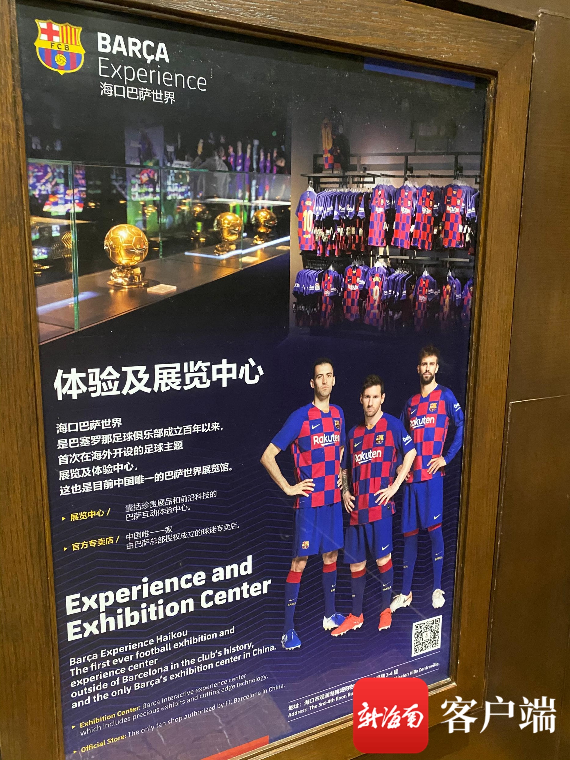 16日,记者在观澜湖度假区走访时也发现,在海口巴萨世界、观澜湖新城外立面、观澜湖酒店内的人行道以及电梯间内,都仍有身着巴萨球衣的梅西形象。