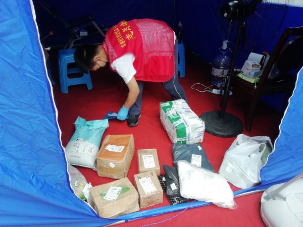 长江日报8月17日讯 17日下午,在南湖街道华锦花园小区101栋楼下,临时疫情防范卡点里几名志愿者正在对进出小区的居民进行信息核查。