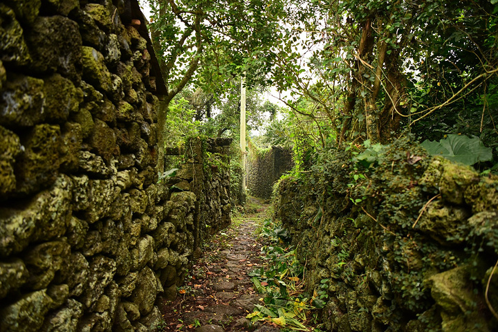 穿过古村场院,在环村的古树与火山石铺就的巷道与其上的青苔景观基调映衬下步入其中,仿佛时光流转的隧道一般引人入胜。村中民居房屋、门楣用未经精致打磨的火山石砌筑而成,过街楼、房屋转角采用合于营造法则的榫卯构造,收放有度而毫不做作的建造方式颇值得反复玩味,而利用火山石孔隙而出的青苔形成的丰富而又统一的色彩则是整个建筑群最美的涂饰,虽历久而依然魅力不减。