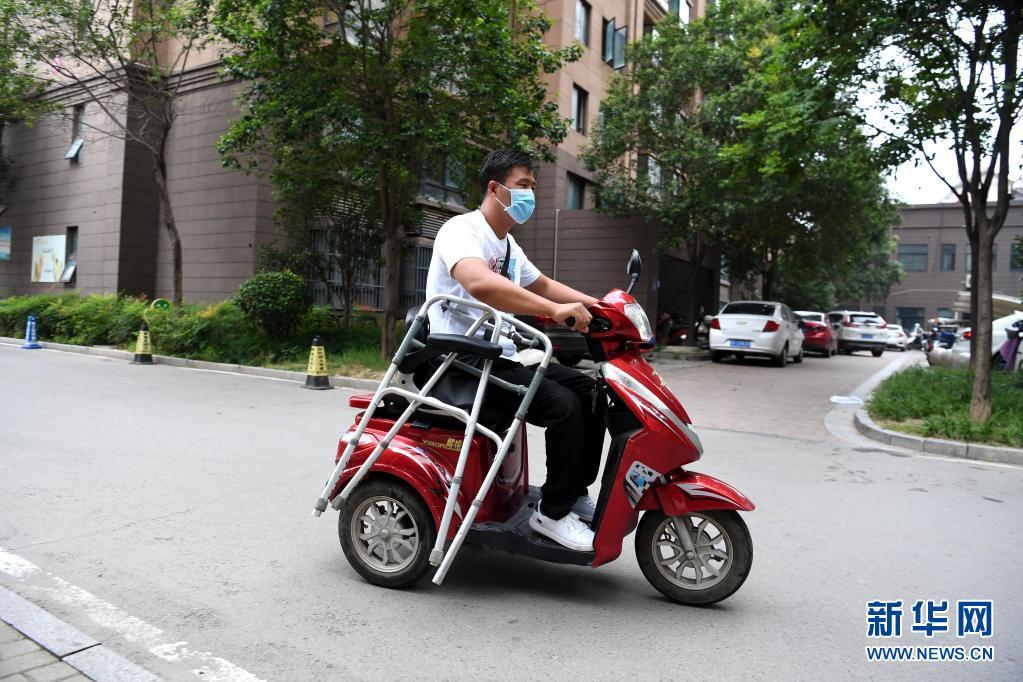 8月16日早晨,王雷骑车去医院上班。新华社记者刘军喜摄