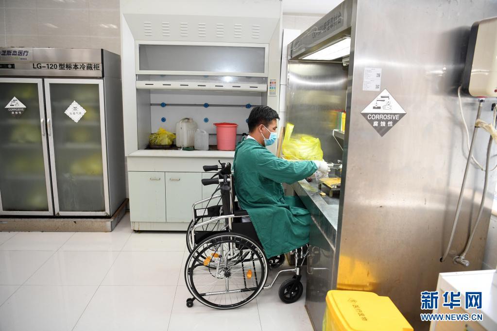 8月16日,王雷在濉溪县医院病理科工作。新华社记者刘军喜摄