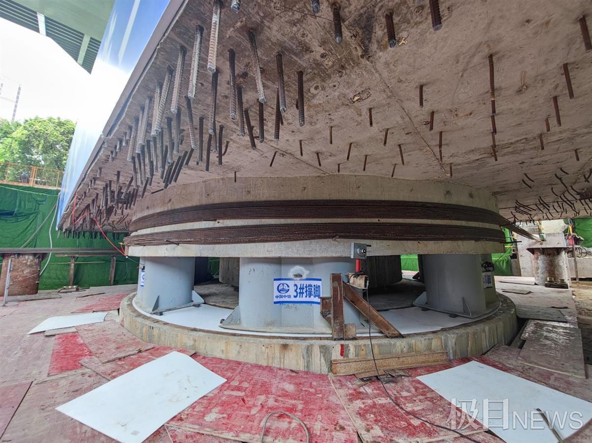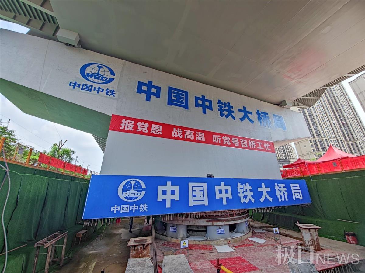 由于“天窗点”时间有限,本次转体需在2个小时内完成,加上转体角度较大、邻近既有线施工、周边住宅楼密集等因素影响,施工人员面临着安全防护要求高、施工配合协调多、地质条件复杂、施工作业区域场地狭小等难题。为此,中铁大桥局精细制定施工方案,加大安全质量管理力度,高效优质推进工程施工,确保在施工安全零事故、质量零缺陷的前提下,保障铁路线有序顺畅运营。