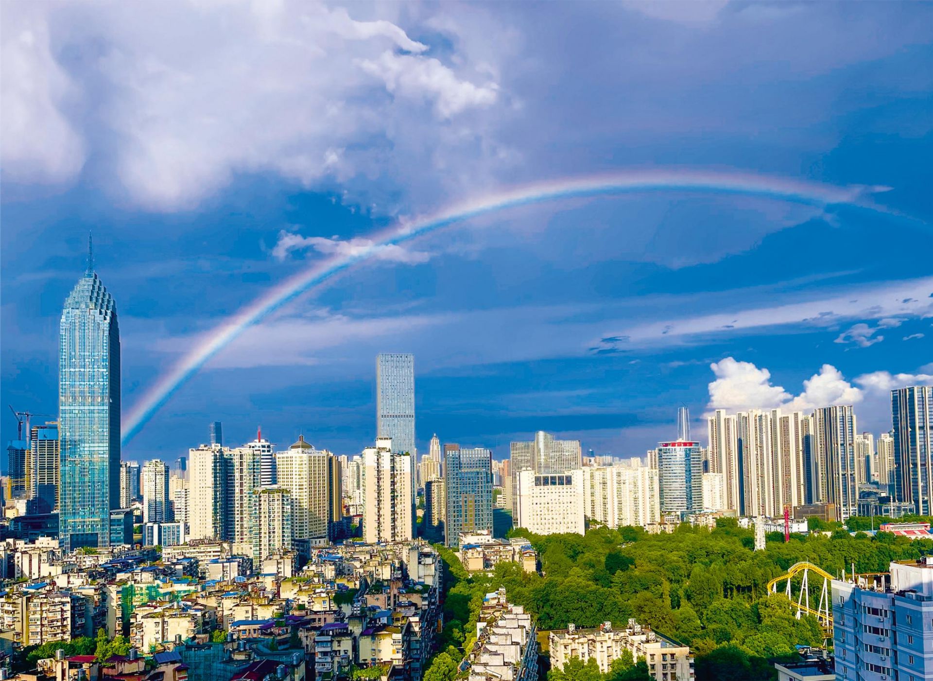 雨霁彩虹卧江城美如画
