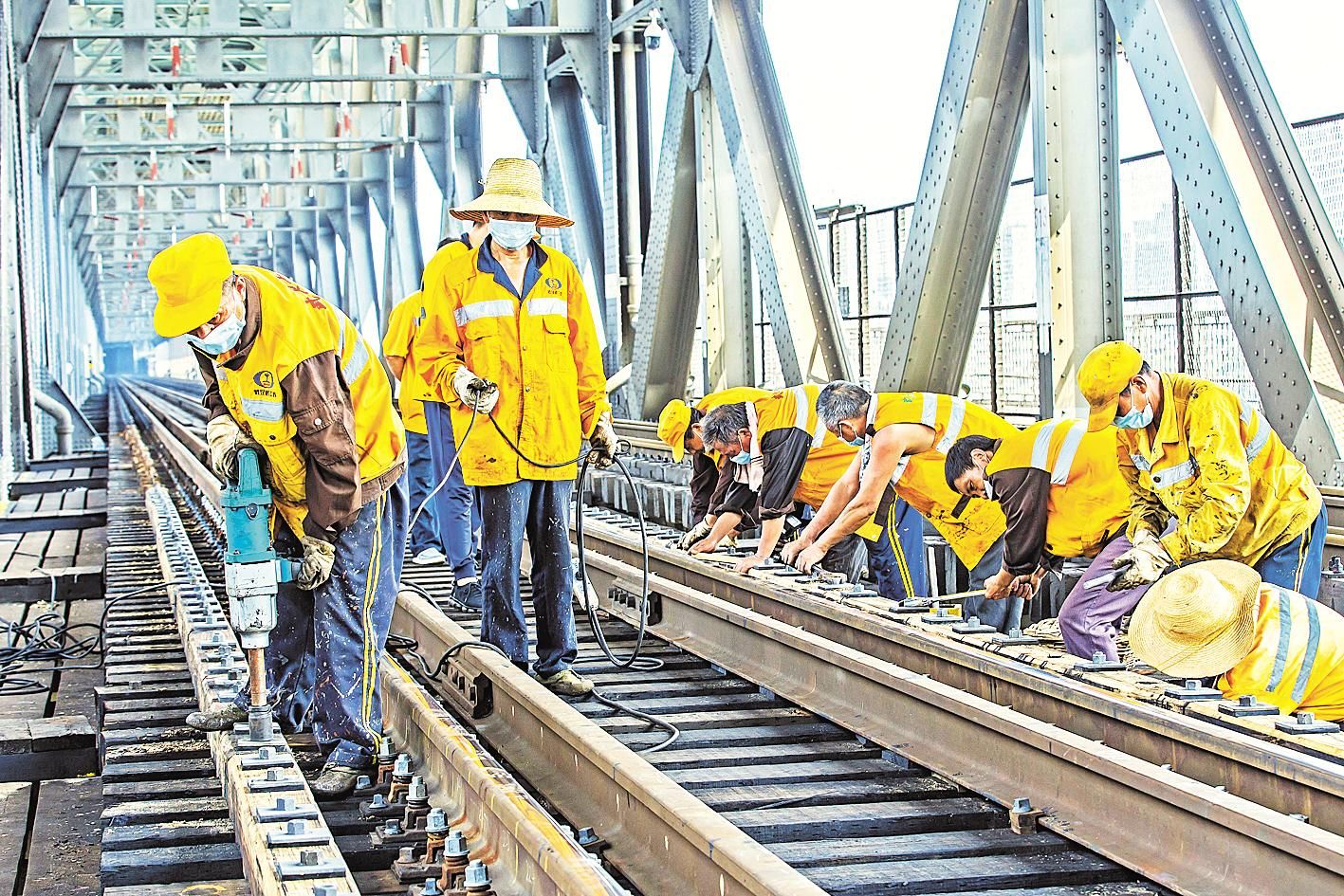 从6月1日开始,桥梁工们按照大修计划,利用京广线“天窗点”,给大桥“强身健体”,不影响列车正常通行。目前,武汉桥工段已完成本次长江大桥大修任务的90%,本月底前将全部完工。