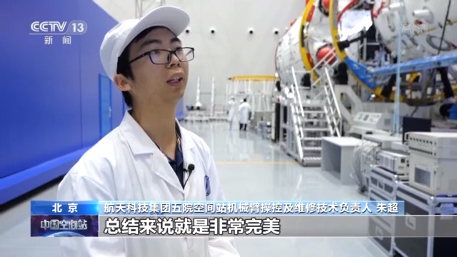 航天科技集团五院空间站机械臂操控及维修技术负责人 朱超:总结来说非常完美,各项指标都达到了我们预期。 对于航天员来说,他们也是第一次进行舱外作业,但是(此前)航天员也进行了大量的水下试验,然后我们还(与航天员)进行了模拟演练,所以说在技术难度上是配合地比较好。