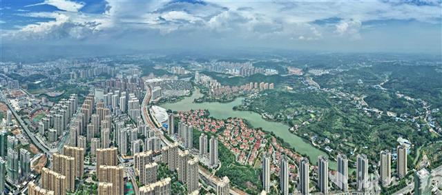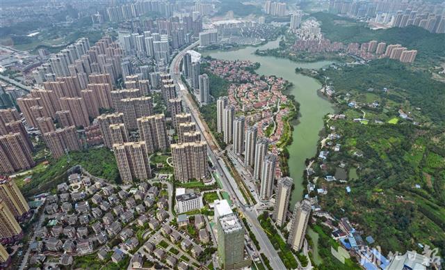 8月20日,宜昌市夷陵区发展大道沿线呈现的生态小城风景。