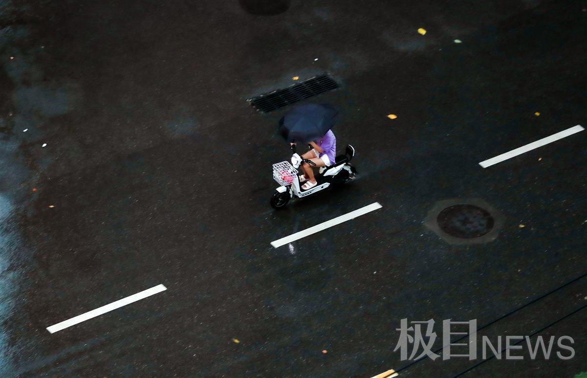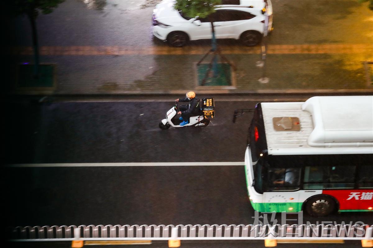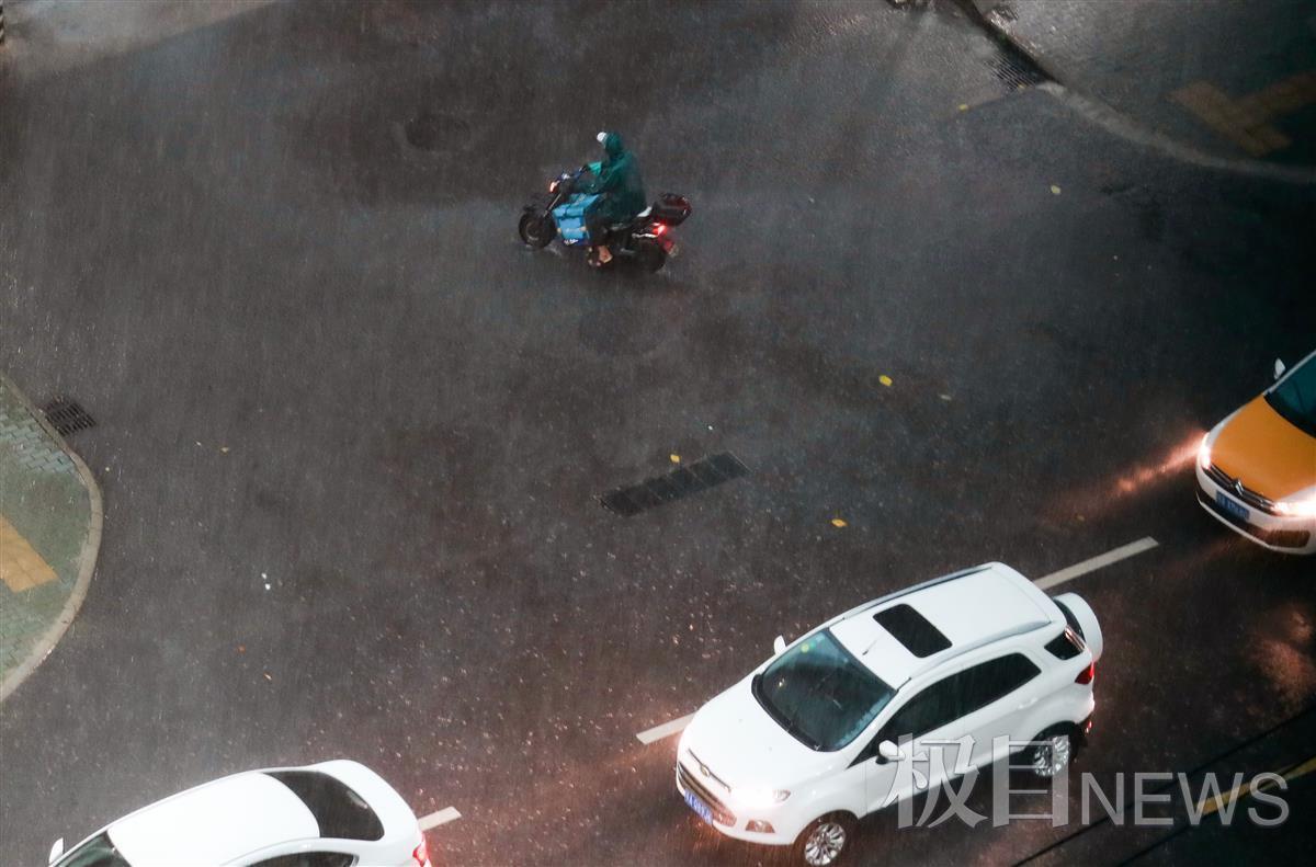 徐东二路在雨中匆匆赶路的人