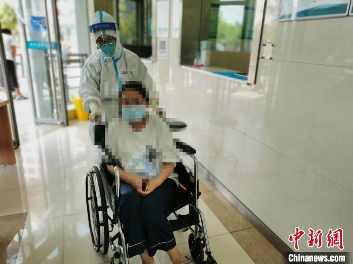图为郑大一附院东院区发热门诊内医护人员推患者就诊。 韩章云 摄