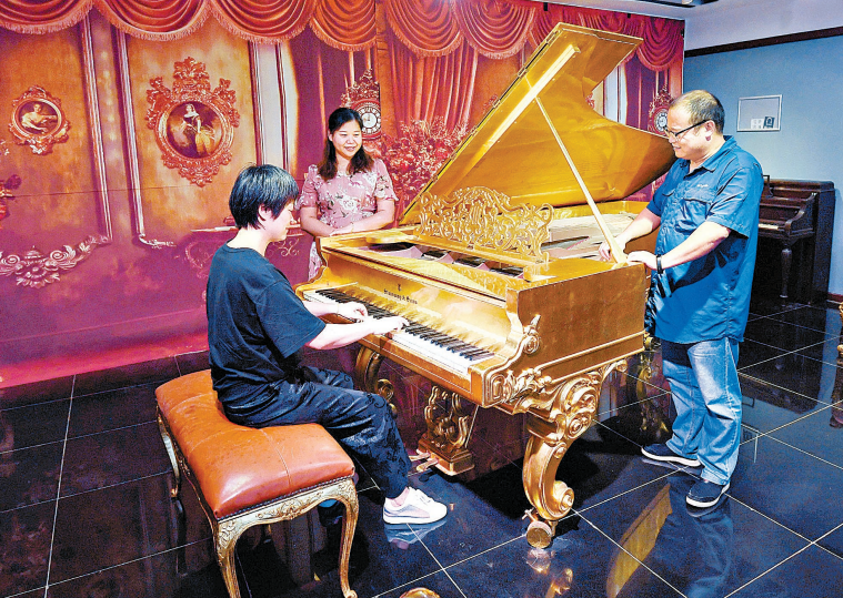 琴台钢琴博物馆内,1865年纯手工制作的施坦威9尺大钢琴经过修复,重新发出悦耳的声音。