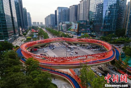 8月20日,四川成都,投运的交子之环。当日,2021年成都“三新”生活节启动暨交子大道开街仪式在蓉举行。(无人机照片) 中新社记者 刘忠俊 摄