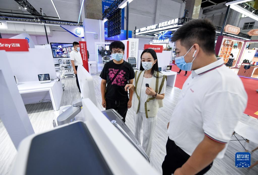 在宁夏银川市举行的第五届中国-阿拉伯国家博览会医疗康养展区,参展企业展出应用了互联网、物联网、云计算等技术的各种医疗器械和产品,助力中阿在医疗健康领域的合作走向深入。