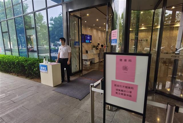 “作为半开放式的园区,我们以楼栋为单位把好关口。”工作人员杨勇介绍,8月2日起,园区增加消杀频次,所有办公楼栋设置红外测温装置,扫码、测温、戴口罩等成为基本要求。