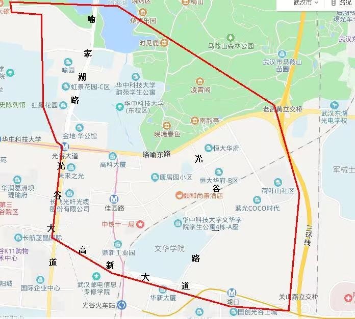 停水减压区域:洪山区珞喻东路关山大道口沿珞喻东路至光谷大道以北,喻家湖路喻家湖北路沿喻家湖路至珞喻东路,珞喻东路光谷大道口沿珞喻东路至光谷一路以北,光谷一路珞喻东路沿光谷一路至高新大道沿线用户无水无水。