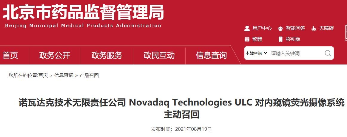 中国经济网北京8月23日讯(记者马先震 孙辰炜) 北京市药品监督管理局网站近日发布了诺瓦达克技术无限责任公司Novadaq Technologies ULC对内窥镜荧光摄像系统主动召回的公告。日前,史赛克(北京)医疗器械有限公司报告,由于史赛克发现2020年1月10至2021年2月2日销售的部分序列号内窥镜荧光摄像系统-视频处理器/光源(VPI)(产品编号PC9001)可能存在图像闪烁、图像丢失或意外重启的问题。截止目前,史赛克未收到因此问题导致伤害或不良事件的报告。史赛克本着对患者健康负责的态度主动发起产品召回。诺瓦达克技术无限责任公司Novadaq Technologies ULC对其生产的内窥镜荧光摄像系统(注册或备案号:国械注进20152061265)主动召回。召回级别为二级。