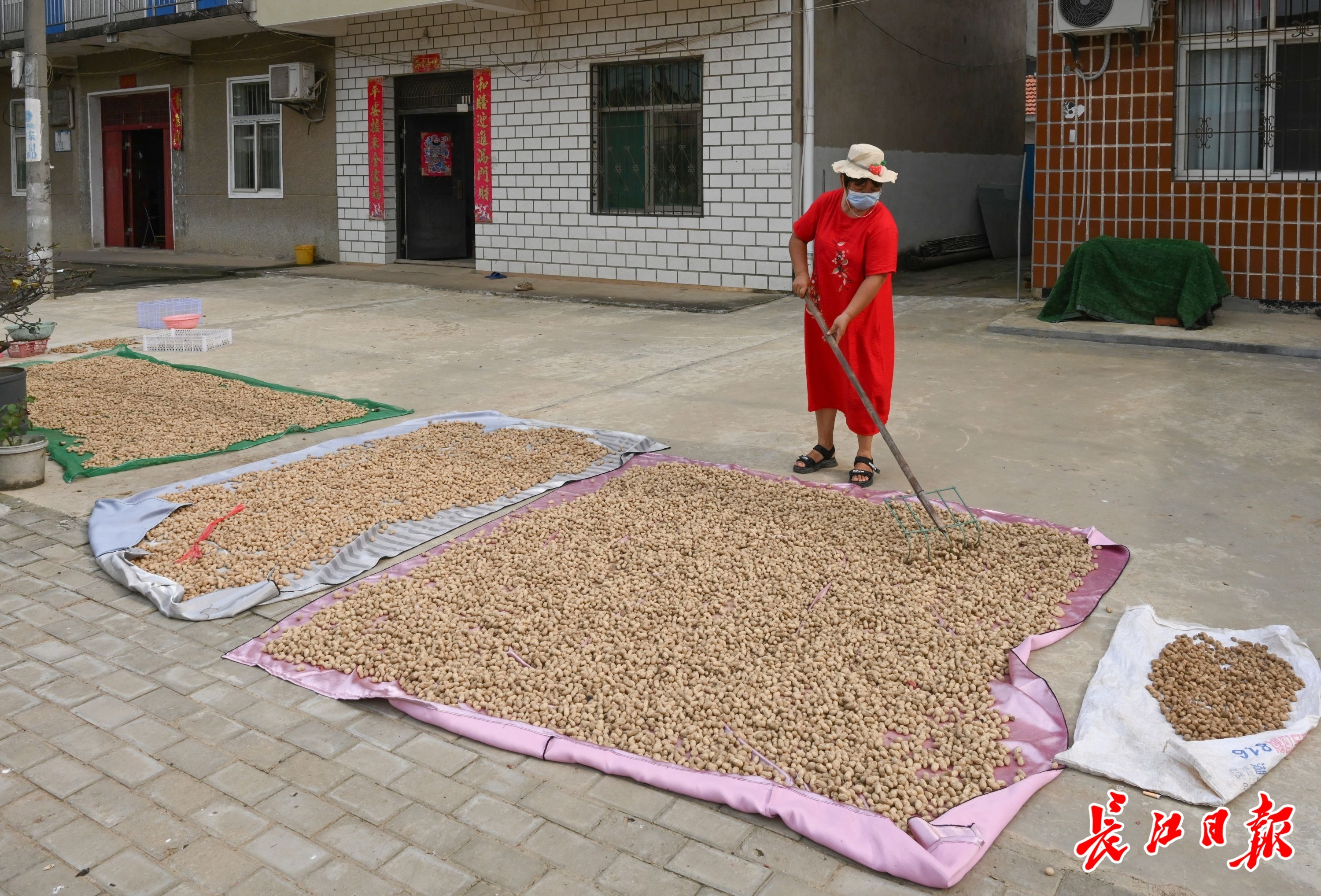 8月23日正值二十四节气中的处暑,这个大队家家户户将收获的花生晒在家门口,迎接处暑节气,已成为一道景观。村民们说种花生不在乎收获多少,主要是享受丰收的喜悦。