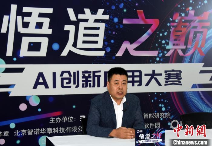 北京智谱华章科技有限公司CEO王绍兰介绍“悟道之巅——AI创新应用大赛”相关情况。 中新社记者 孙自法 摄