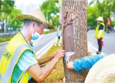 她说,今年是该局首次尝试对受损行道树进行人工植皮。截至目前,已有30余株樟树完成了修复。虽然植的树皮不能“复活”,但能有效保护树木健康生长,有效防治病虫害的侵蚀。