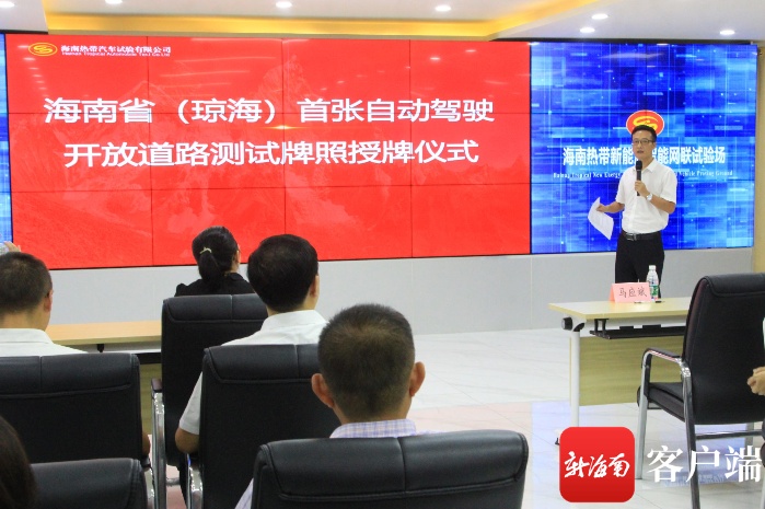 新海南客户端、南海网、南国都市报8月25日消息(记者 苏桂除)自动驾驶的智能网联汽车离我们越来越近啦!8月25日,海南省首张智能汽车道路测试牌照在海南热带汽车试验有限公司(以下简称“海南试验场”)发放,标志着全国自动驾驶智能网联汽车可以在海南独具特色的高温、高湿、高腐蚀、多雨的开放道路上进行功能及性能方面的测试。