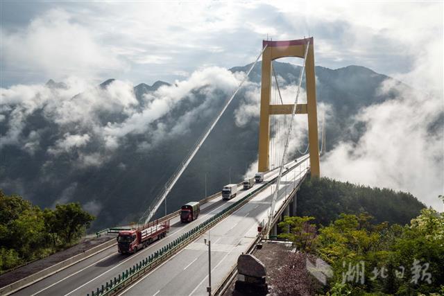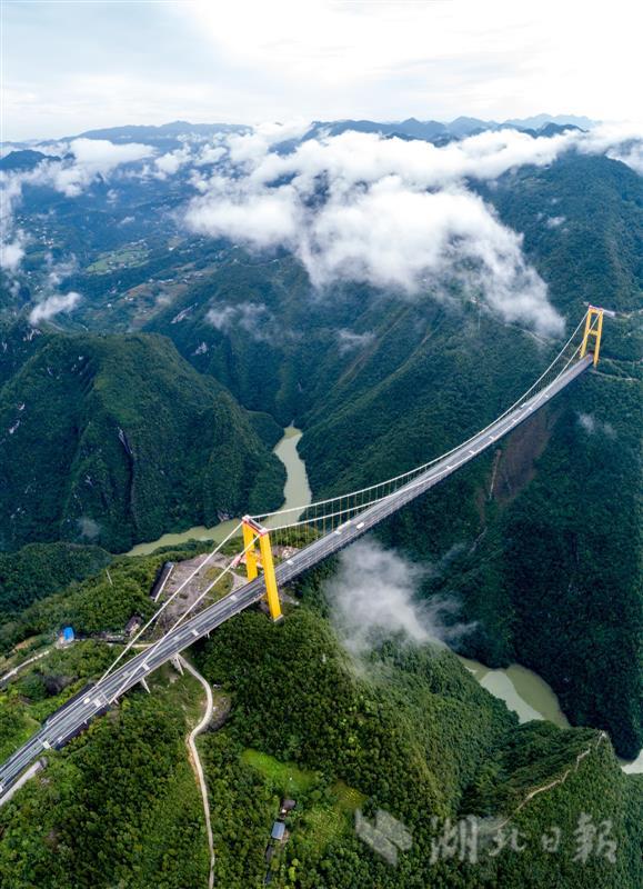 8月24日,地处鄂西境内的沪渝高速公路巴东四渡河特大悬索桥云雾缭绕,宛如仙境。