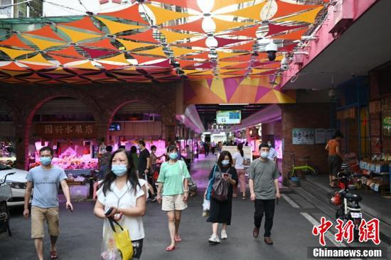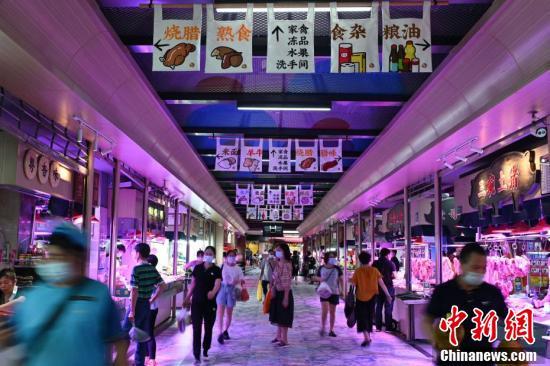 8月25日,广东省广州市东山肉菜市场人来人往。广州东山肉菜市场经创新改造“颜值”提升,设计细节保留岭南市井气息,打造充满设计感的网红肉菜市场。 中新社记者 陈楚红 摄