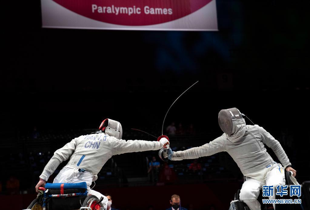 当日,在日本千叶县幕张国际会展中心举行的东京残奥会轮椅击剑男子个人佩剑A级季军争夺战中,中国选手田建全以15比14战胜乌克兰选手安德里·杰姆丘克,获得铜牌。