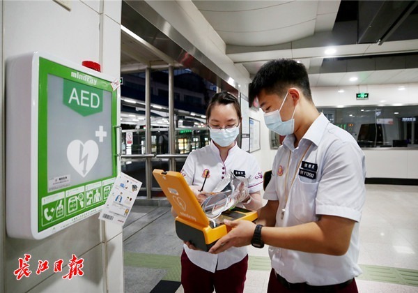 据了解,今年7月,武汉市卫生健康委员会与武汉地铁联合启动轨道交通车站自动体外除颤仪(AED)的配备工作。截至目前,已在215座地铁站安装215台AED设备,预计9月底前将实现全线网240座车站全覆盖。此次救助乘客,是武汉地铁安装AED后第一次使用,并且成功救人。