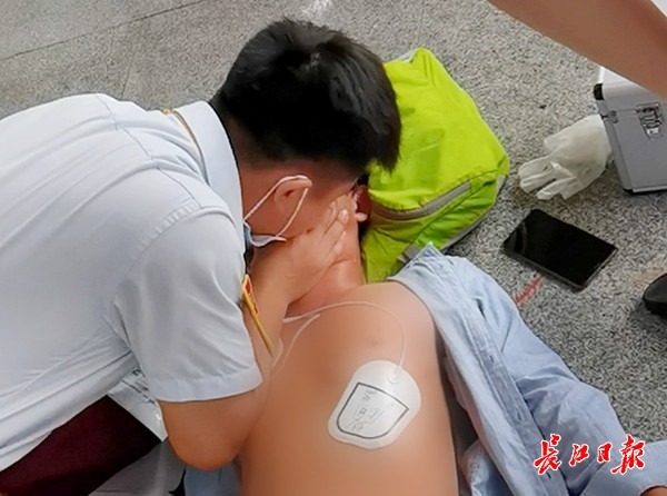 长江日报大武汉客户端8月28日讯 8月27日,一名乘客在武汉地铁列车内晕倒,无意识且呼吸微弱,车内其他乘客、列车以及车站工作人员紧急联动,使用站内AED(自动体外除颤仪)成功救助乘客。