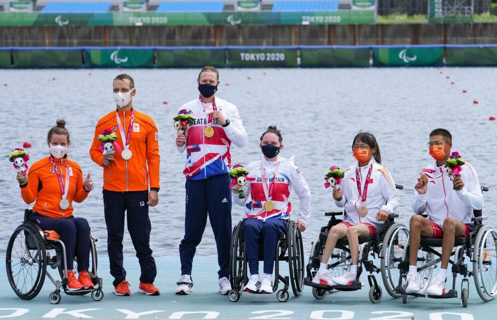 当日,在东京残奥会赛艇项目PR2级混合双人双桨决赛中,中国组合刘爽/蒋继剑获得铜牌。