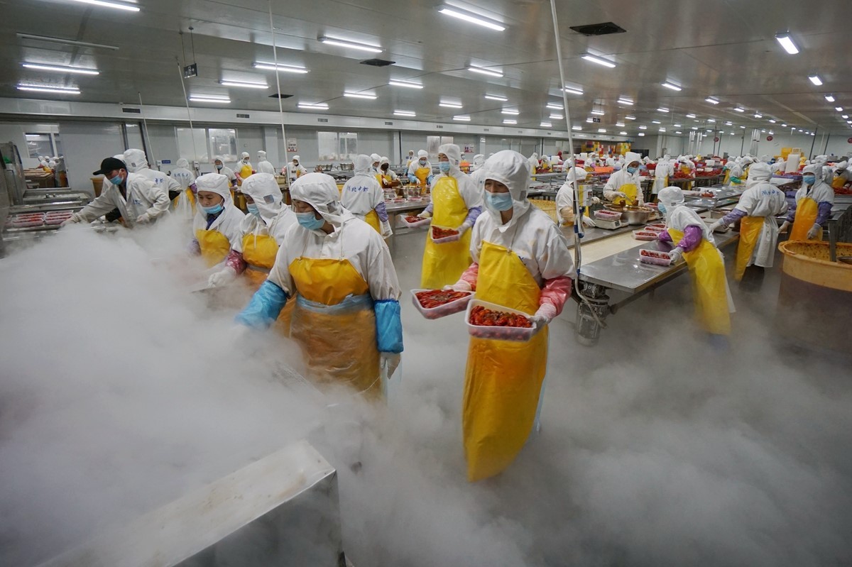 潜江速冻小龙虾精深加工车间的工作场景。通讯员潜轩 摄