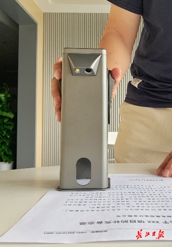 盖章的同时,摄像头会自动拍下文件内容,以便后期核实用章记录。 长江日报记者乔驰 摄