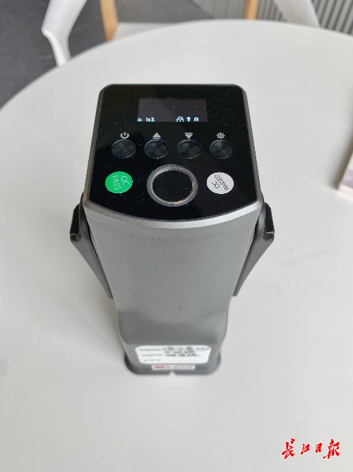 智能印章顶部镶有显示屏、指纹解锁模块和按键。 长江日报记者乔驰 摄