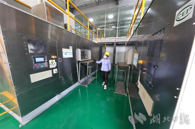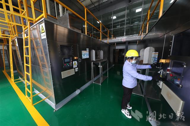 8月29日,在襄阳市樊城区家庭厨余垃圾处理站,员工在发酵仓查看家庭厨余垃圾发酵情况。