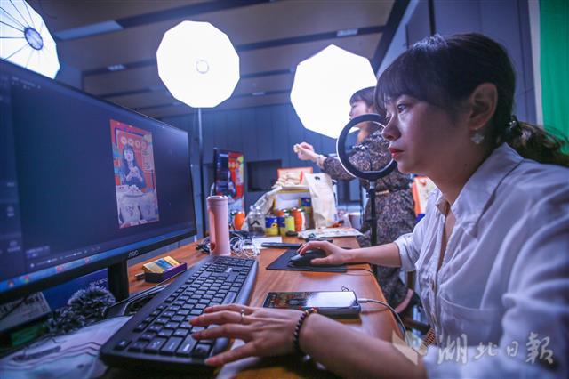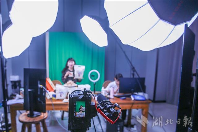8月28日,秭归屈姑国际农业集团员工在屈姑坊电商直播间进行带货直播。