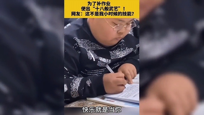 儿子开学前狂补作业老爸笑疯